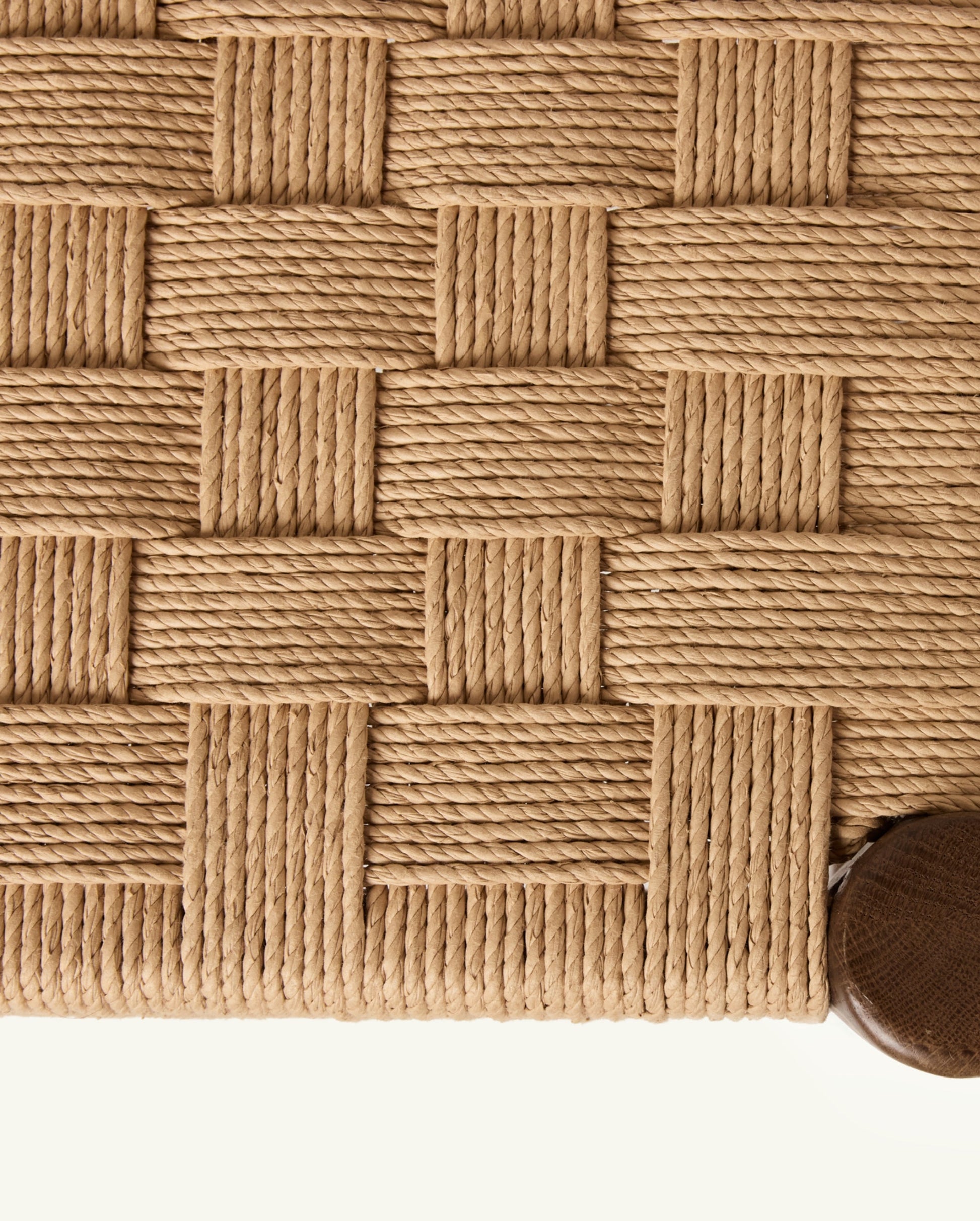 The Isa Stool is a fresh take on a modern heirloom with its brown-stained solid white oak frame and distinctly-patterned Danish paper cord seat.
