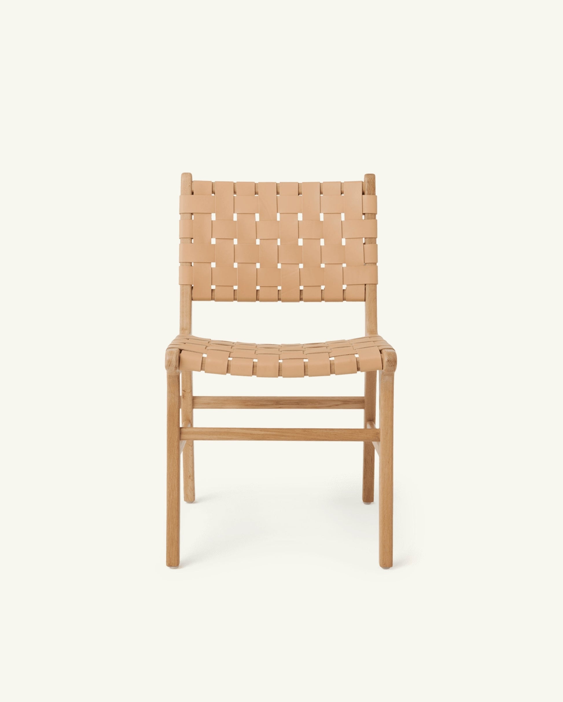 Ease into our mid-century Scandinavian-inspired dining chair with a modern laid-back vibe. The Dining #1 chair in natural is made from solid white oak and treated to a striking neutral finish. The full-grain leather is vegetable-tanned, highlighting the natural texture of the hide while reducing our environmental footprint. The leather is finished with an anti-UV topcoat to protect against discoloration and stains.