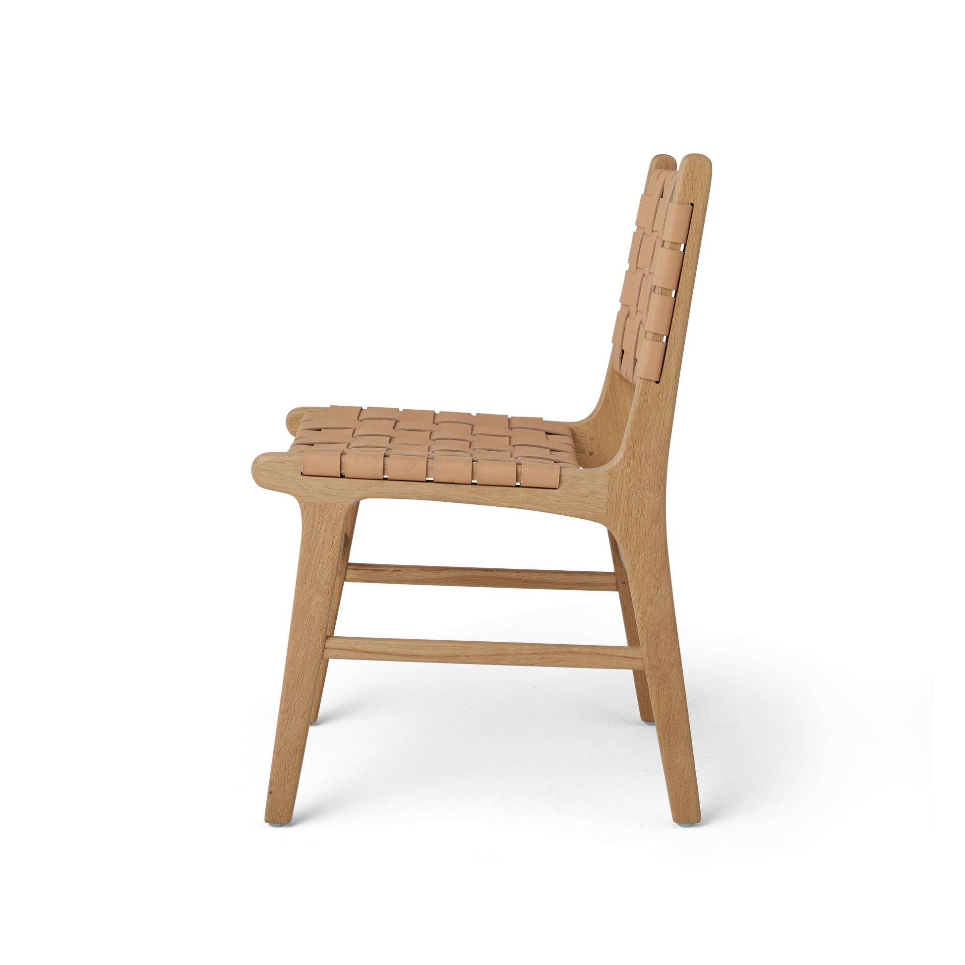 Ease into our mid-century Scandinavian dining chair with a modern laid-back vibe. The dining #1 chair is made from American white oak and treated to a striking neutral finish. The full-grain leather is vegetable-tanned, highlighting the natural texture of the hide while reducing our environmental footprint. The leather is finished with an anti-UV topcoat to protect against discoloration and stains. Ideal as a dining set, breakfast nook centerpiece, or statement office chair.
