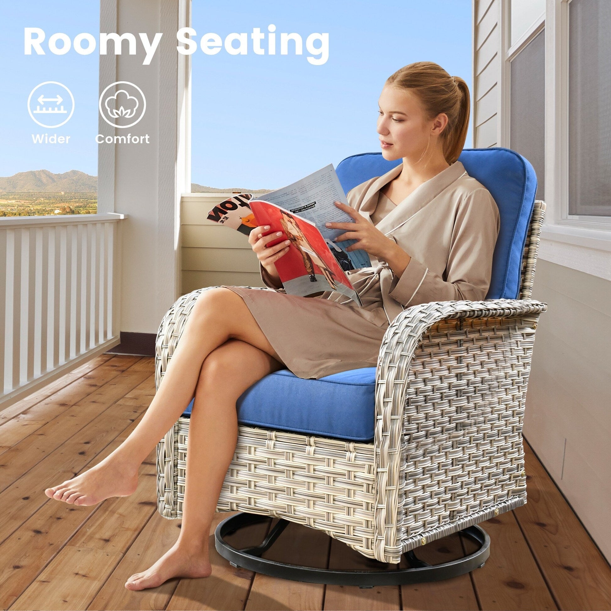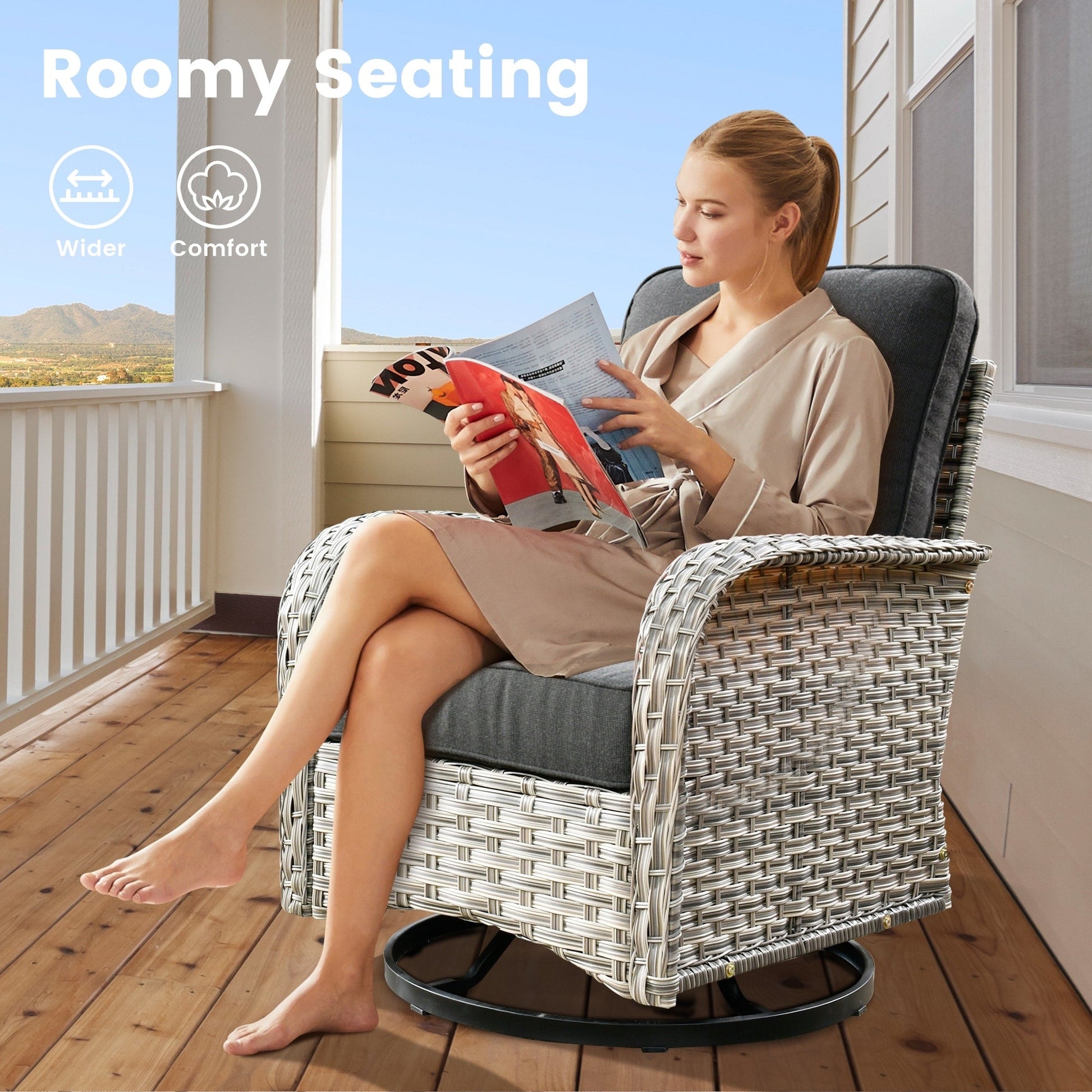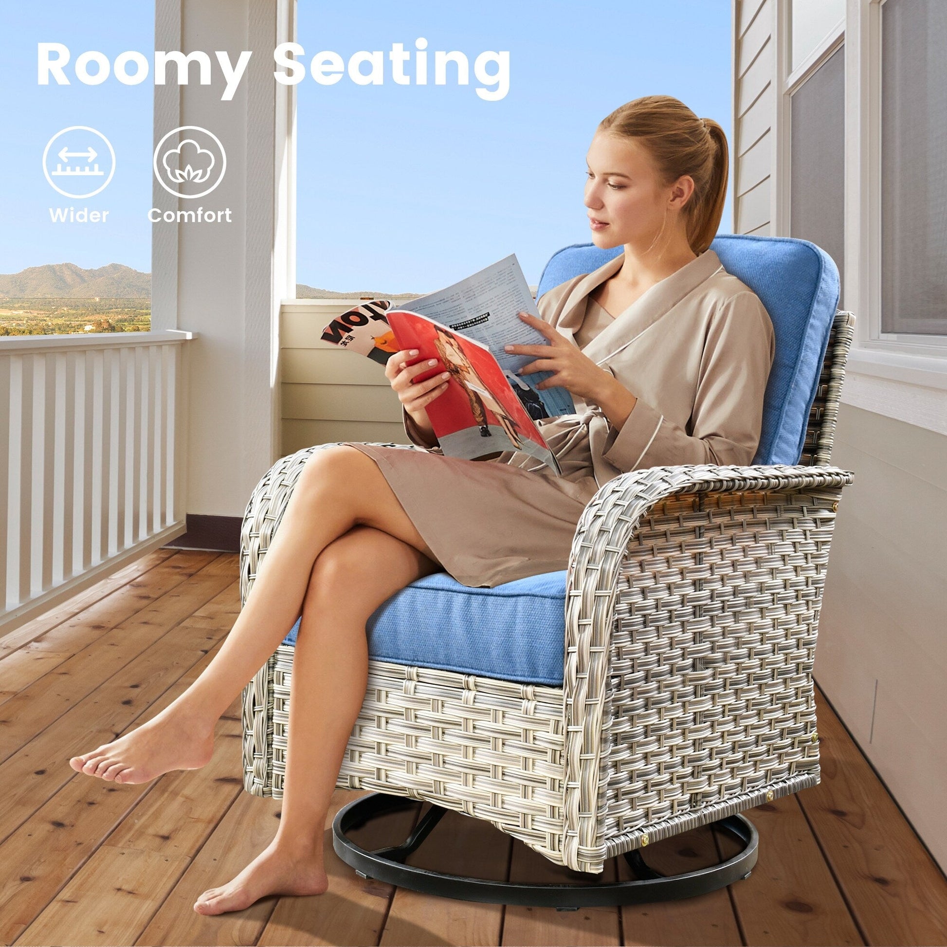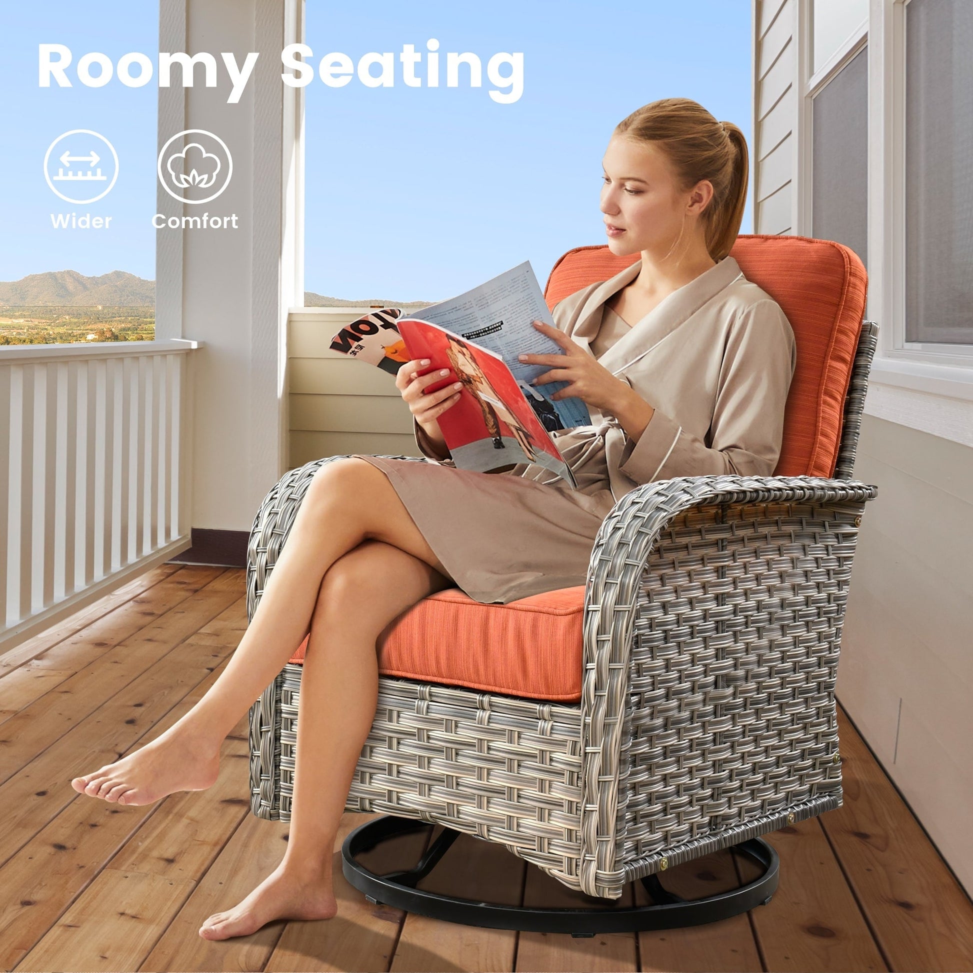OVIOS 9 Pieces Outdoor Wicker Swivel Chair Set With Fire Table