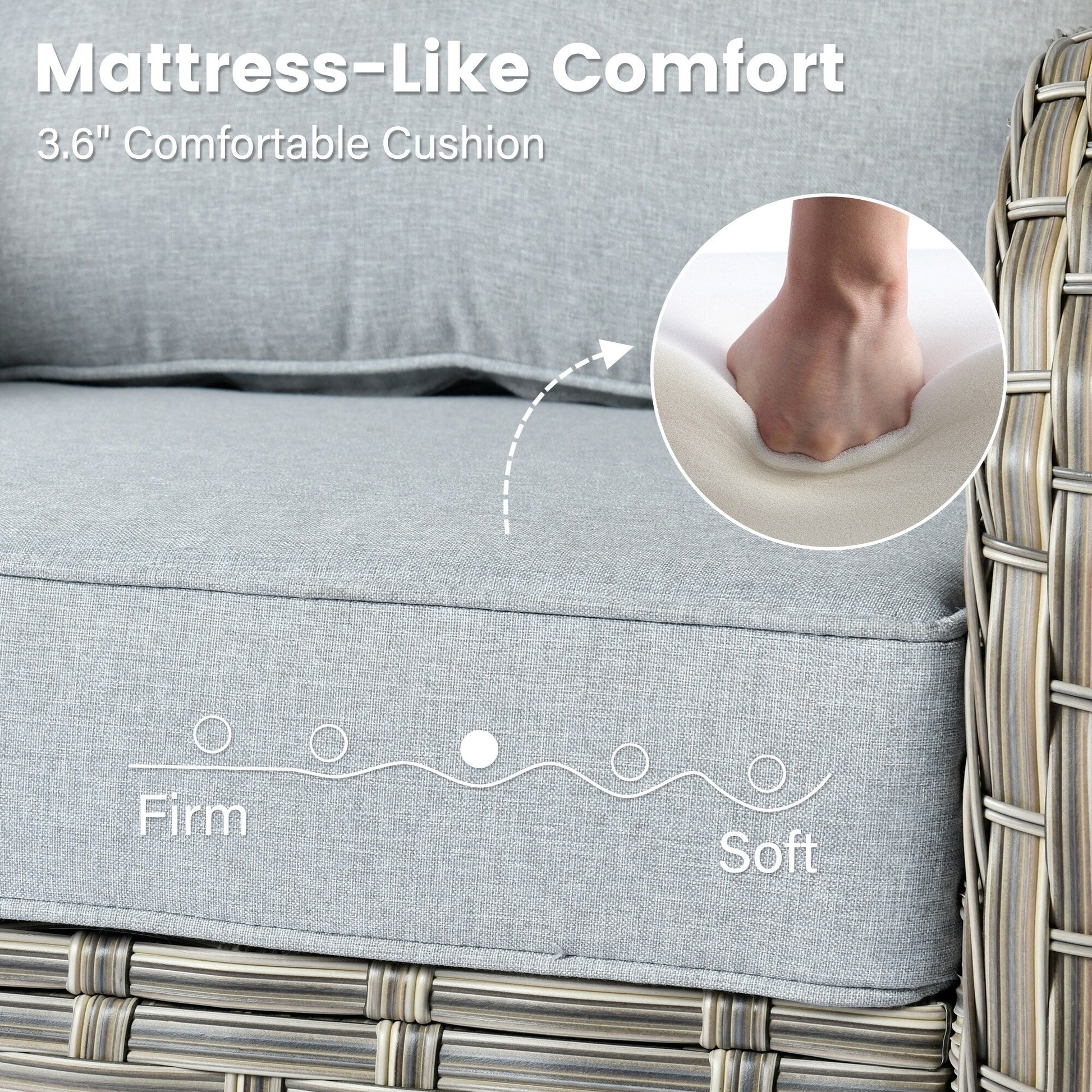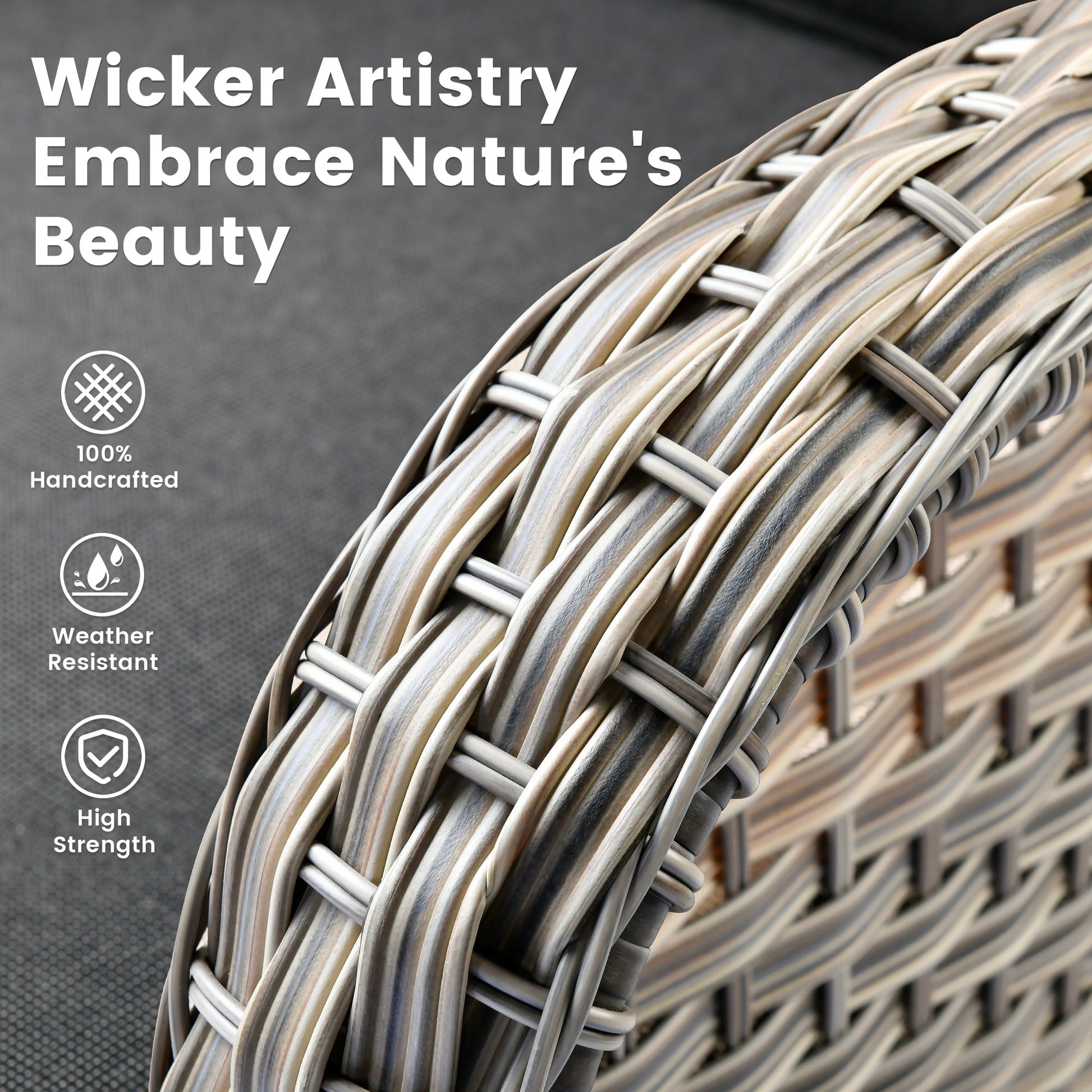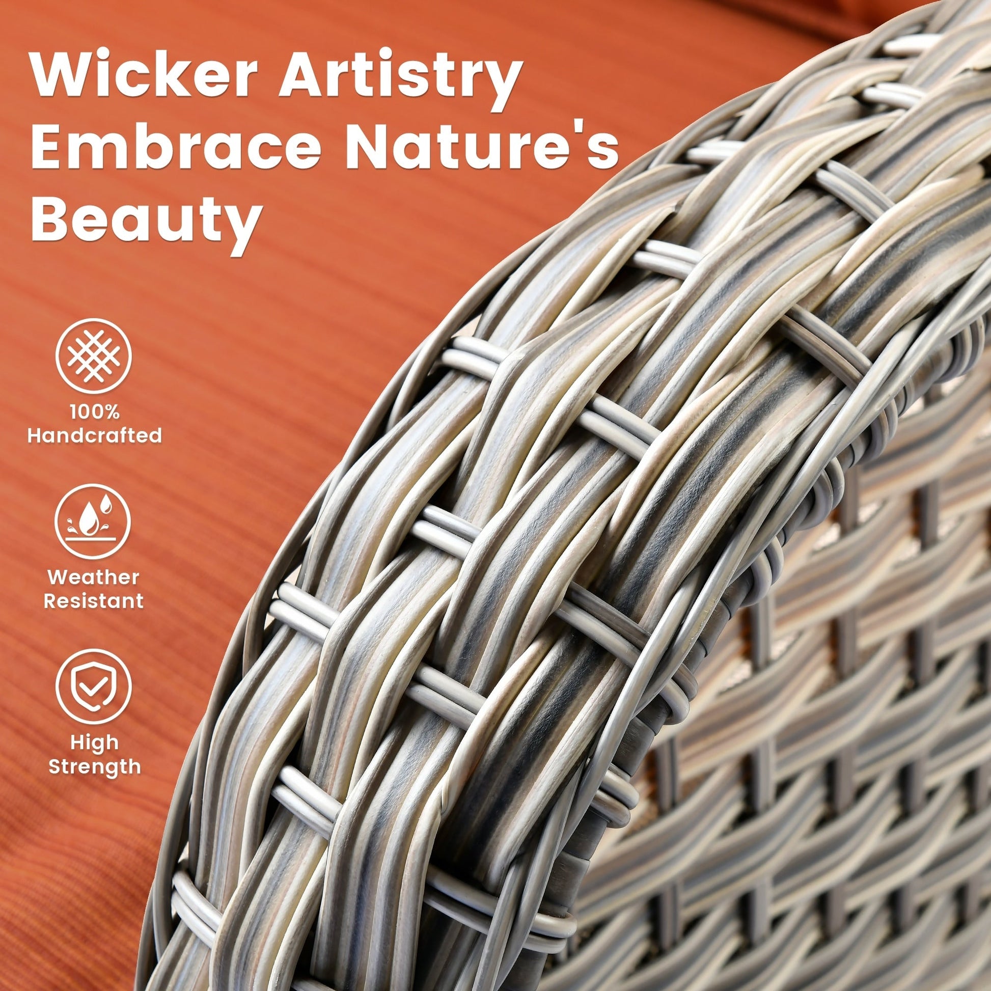 Elevate your outdoor living experience with this Premium Outdoor Wicker Furniture Set, now including a stylish Metal Fire Pit, designed to combine style, comfort, and functionality. Perfect for family gatherings, outdoor parties, or quiet personal relaxation, this furniture set will provide the ideal setting for any occasion.